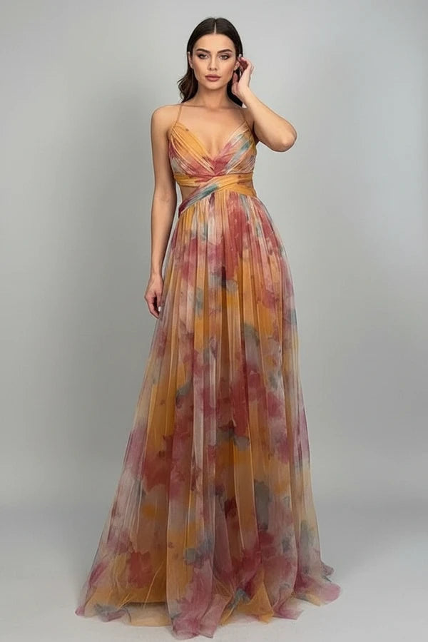 Embrace the season with this beautiful floral maxi dress, designed for comfort and style. Featuring a flattering A-line silhouette and delicate spaghetti straps, this dress is perfect for any occasion. The open back and tie waist add a touch of sophistication, making it a must-have for your wardrobe.