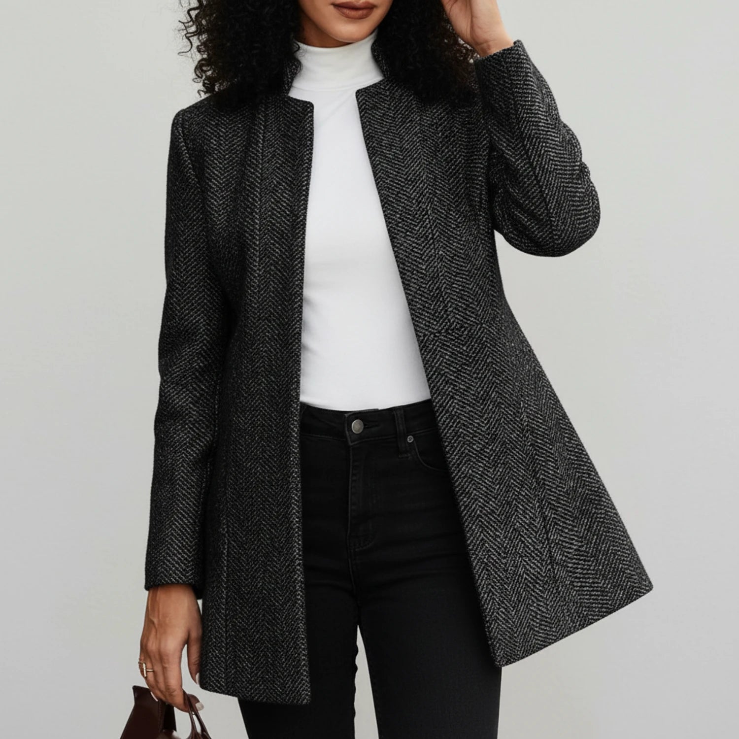 Experience the perfect blend of style and comfort with this open front jacket. The A-line silhouette offers a flattering fit, while the stand collar adds a touch of modern sophistication. This jacket is versatile enough for everyday wear, easily complementing both casual and more polished outfits.