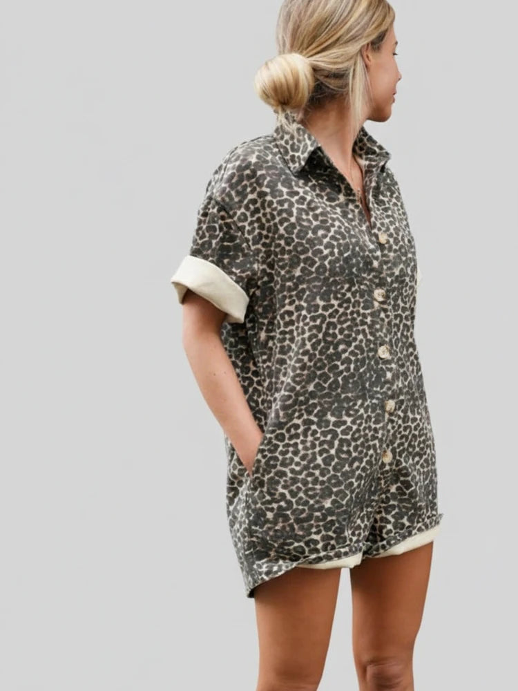 Elevate your casual wardrobe with this must-have leopard print romper. Embrace comfort and style, and make a lasting impression! Shop now and add a touch of wild elegance to your collection.